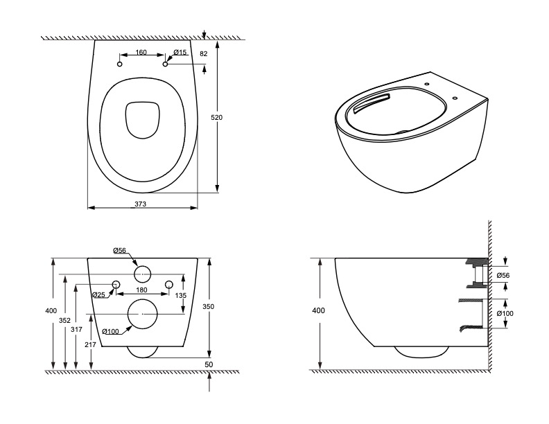 • Διαστάσεις λεκάνης: 520 x 373 x 400 mm (ύψος από δάπεδο)